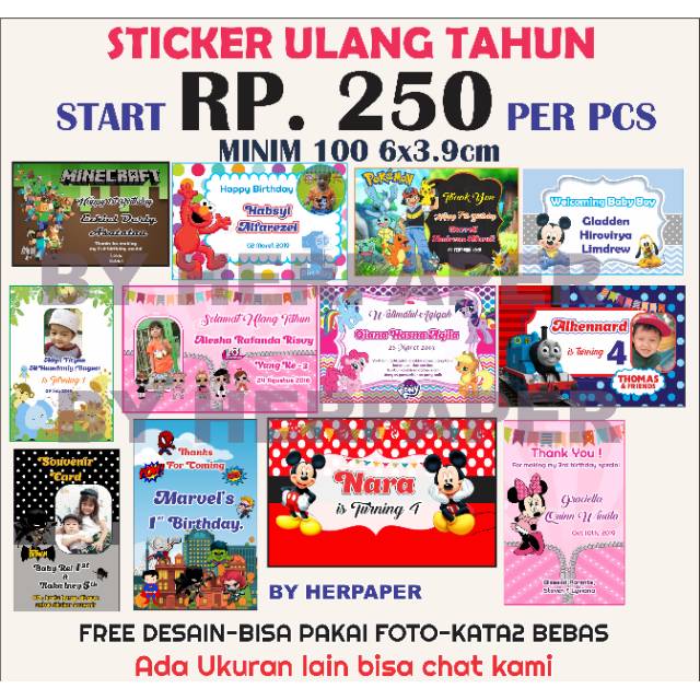 Sticker bulat 1 pack (isi 24 lbr) stiker ultah ulang tahun custom. Jual souvenir ulang tahun, akikah, wedding, hampers baby one month, stiker dan label custom, paperbag murah, tas kertas, stiker online shop, tumbler, balon led, balon polkadot, balon minnie, lunchbox, baju bayi, baju anak, baju menyusui, kemasan ouvenir, box souvenir, mug sablon, hardbox, jakarta barat, handuk bordir, tempat makan, botol minum. Buku cerita, dongeng, dan buku aktivitas. Informasi ultah anak yang ada pada stiker ulang tahun biasanya berisi: Berikut ini rekomendasi mainan yang cocok untuk diberikan kepada anak sebagai kado anak 3 tahun di hari spesialnya yang tentunya bermanfaat dan edukatif.